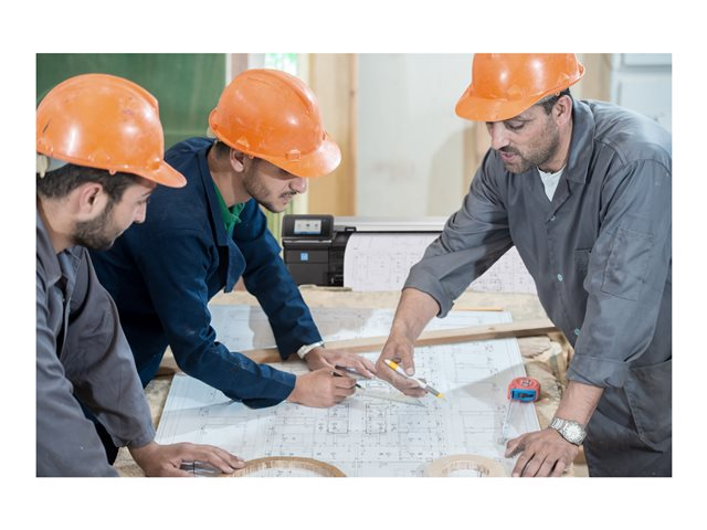 - Få HP DesignJet-kvalitet även i mindre format – skriv ut halvsidesdokument med 50-arks A4/A3 inmatningsfack.