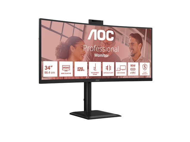 AOC 34inch 3440x1440 120HZ VA CURVED H/A 180 MM USB-C DOCKING TUV EyeComfort Hardware USB HUB DP HDMI
