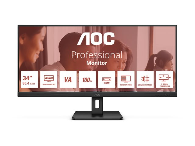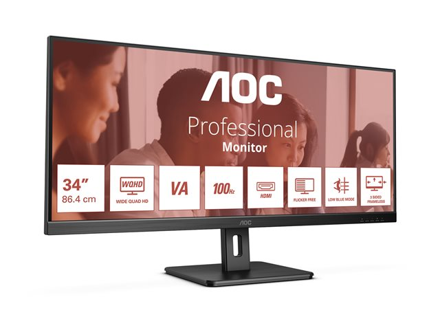 AOC U34E2M, 86,4 cm (34"), 3440 x 1440 pixlar, Wide Quad HD, 4 ms, Svart