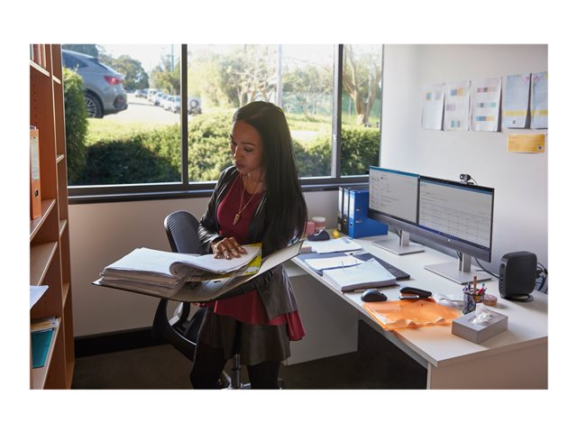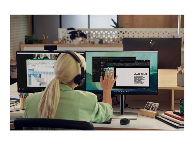 HP E24q G5 är utrustad med en rad anslutningsmöjligheter, inklusive HDMI, DisplayPort 1.2 och USB-portar, vilket gör det enkelt att ansluta olika enheter. Skärmen har också HP Eye Ease-teknik för att minska belastningen på ögonen vid långvarig användning. Dessutom ger det justerbara stativet flexibilitet med alternativ för höjd, lutning, pivot och svängning, vilket säkerställer ergonomisk komfort för alla användare. Den här skärmens eleganta design och platta frontram ger stil åt alla arbetsytor.