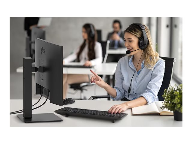 LG 27BA650-B är utformad för mångsidighet och har en KVM-switch och USB 3.2 Gen 1-hubb, vilket underlättar anslutning och styrning av flera enheter. V-Sync-frekvensen på 100 Hz och en låg responstid på 5 ms förbättrar den visuella upplevelsen, särskilt vid spel och dynamiskt innehåll. Det ergonomiska stativet kan justeras i höjd, lutning, vridning och svängning, så att användarna kan anpassa sin tittarupplevelse för komfort och produktivitet.