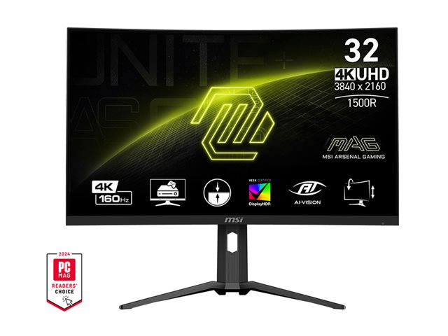 - 32-inch UHD (3840 x 2160) LED-backlit LCD monitor with a curved screen for an immersive viewing experience