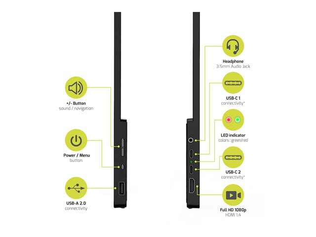 15.6" - bärbar - pekskärm - 1920 x 1080 Full HD (1080p) @ 60 Hz - IPS - HDMI, 2xUSB-C - högtalare