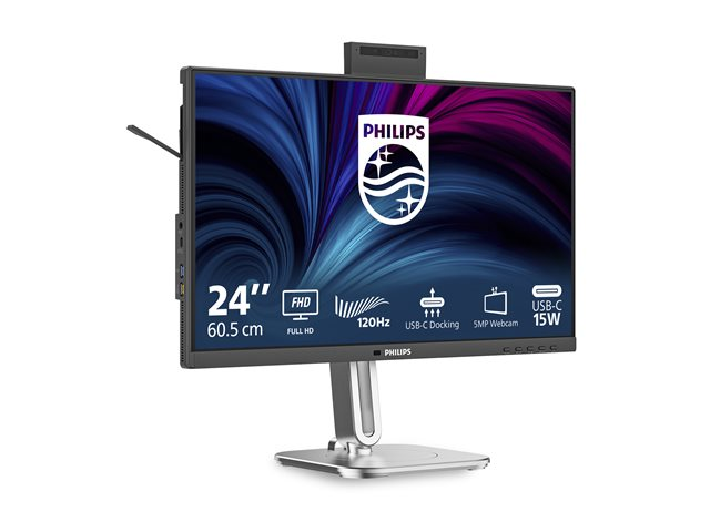 LED-skärm - 24" (23.8" visbar) - 1920 x 1080 Full HD (1080p) @ 120 Hz - IPS - 1500:1 - HDMI, DisplayPort, USB-C - högtalare - silver, träkol