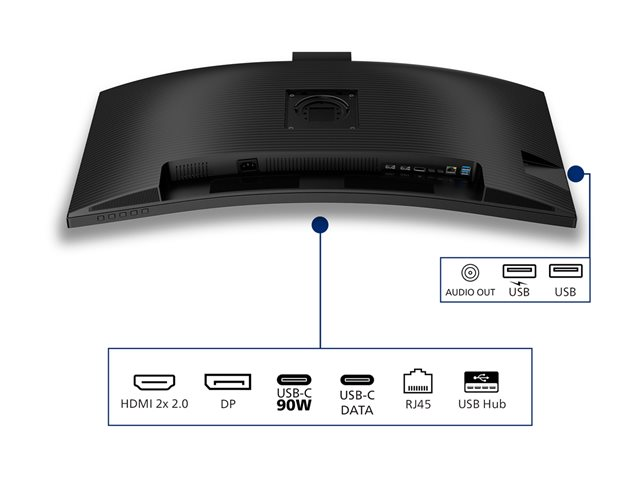 LED-skärm - böjd - 34" - 3440 x 1440 WQHD @ 120 Hz - VA - 300 cd/m² - 3500:1 - HDR10 - 4 ms - HDMI, DisplayPort, USB-C - högtalare - svart med struktur
