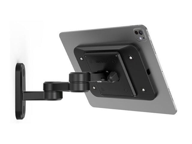 The Swing Arm stand can be mounted on any flat surface, counter-top or to a wall for use as a secure interactive display or kiosk. It is the most versatile mount allowing you to have a horizontal or vertical swing with screen tilt. The arm extends out to 9.97 inches off the wall and with its two joints, it is great for corners, under cabinets or when counter space is limited.