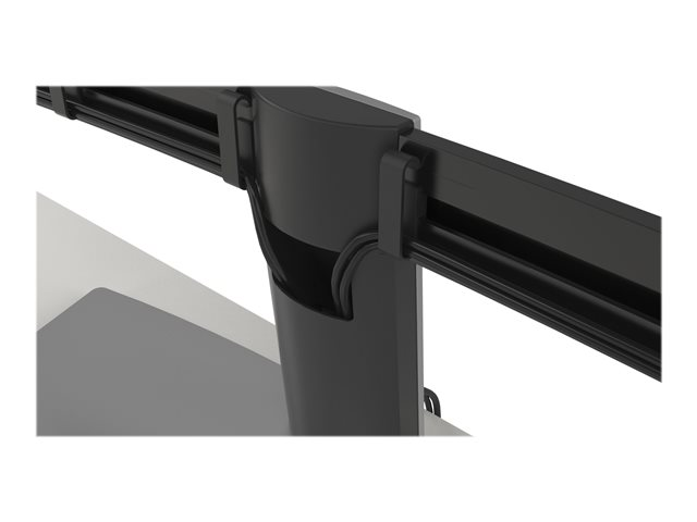 - Optimera utrymmet på skrivbordet med en effektiv kabelhantering. Montera upp till två 27-tumsskärmar utan verktyg