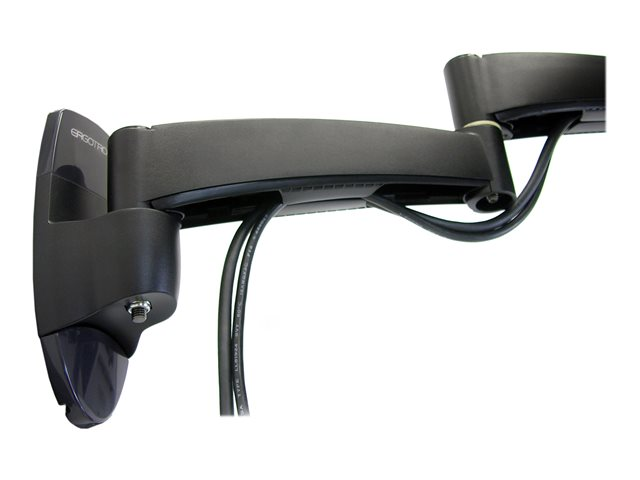 - Cable management system routes and conceals cables under the arm