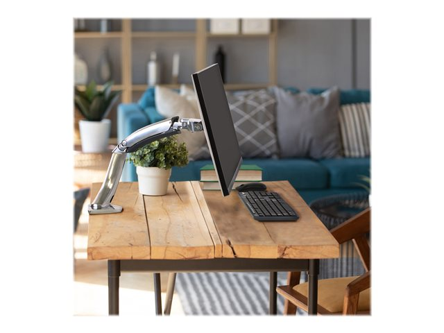 - Cable management feature conceals and routes cables under the arm, out of the way