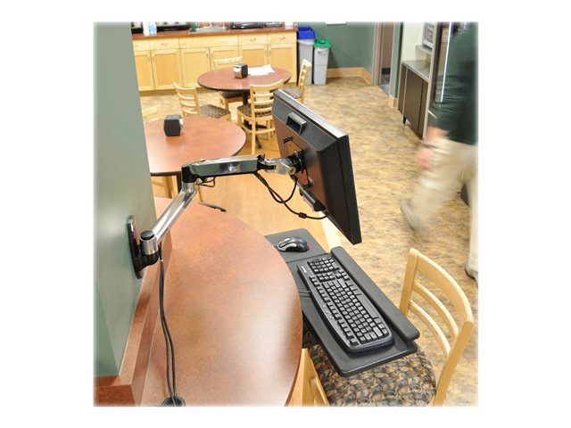 - Cable management feature routes cables under the arm, out of the way