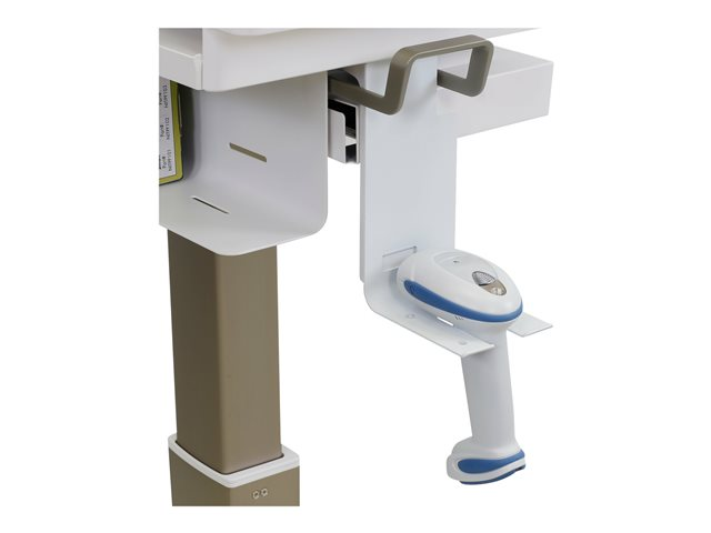 Anslut en scanner via kabel till en CareFit Slim LCD Medicinvagn för smidiga arbetsflöden och bekväm arbetsställning i förflyttningar mellan rum. Anslut en mobil Zebra-skrivare genom att lägga till tillbehöret Sidomonterat skrivarfäste.