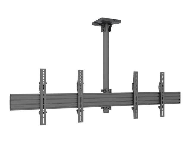 Monteringssats (takplatta, klämfäste för stång, monteringsskenor, skyddslock för takplatta, 4 lutningsarmar, 2 förlängningsrör (1,5 m)) - för 2 LCD-bildskärmar - aluminium, stål - svart - skärmstorlek: 4