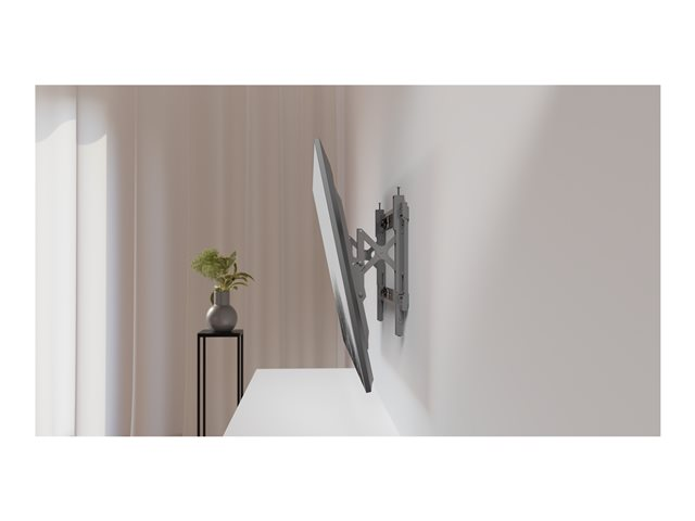 This wall mount partially pre-assembled right out of the box, makes this our fastest installing service wall mount ever. The installation process is simple. As with other Multibrackets products the installation is built on that the rail is first installed onto the wall. No measuring and guessing needed. When the arms are hanging on the rail the display can be moved left and right to find the exact right position for the display, lateral shifting.