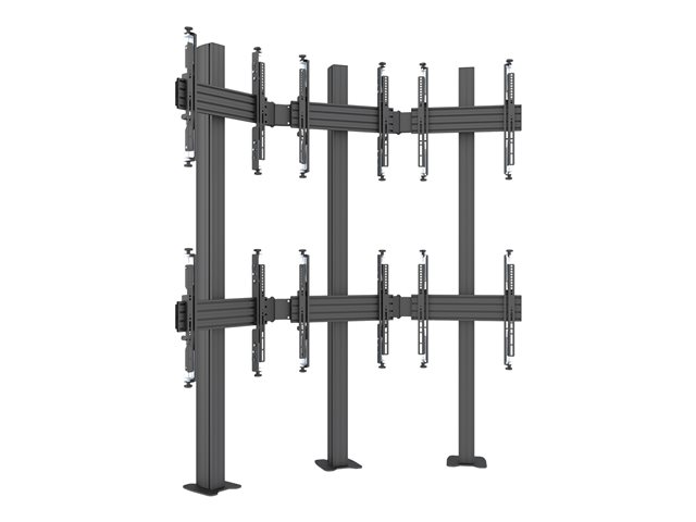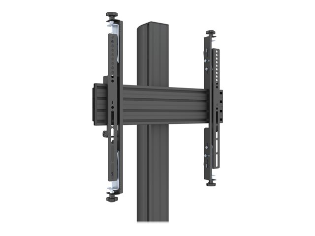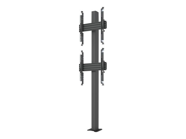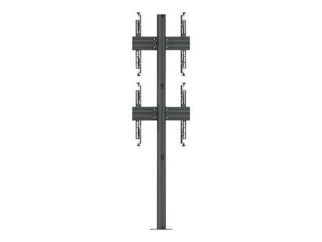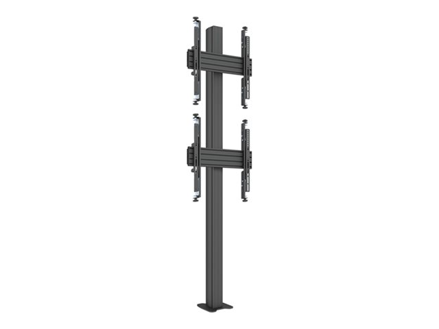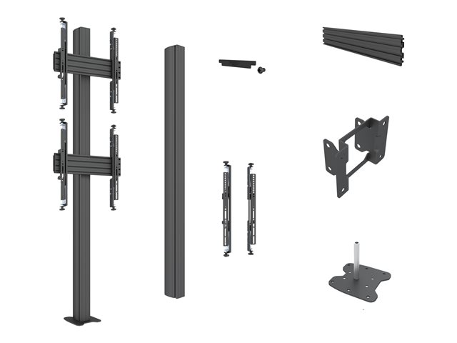 Monteringssats (ändhättor, stång, 4 justerbara monteringsarmar, 2 skenor, fast golvbas, 2 anslutningsplattor) - mikrojustering - för 2 LCD-bildskärmar - plast, aluminium, stål - svart - skärmstorlek: 32"-65" - mont