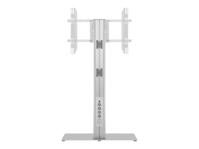 On the backside of the column the M Public Display Stand 145 HD Single Silver w. Floorbase has a built in 220V power rail with dual USB´s making it very simple to add power needs from the display or any accessory directly to the power rail. This makes changes very quick and simple as well as keeping the design clean even after installing various accessories.
