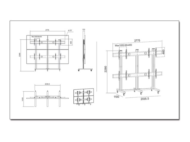 M Public Video Wall Stand 2 Screens (2x2) screen array configuration is: 2 screens wide x 2 screens high.