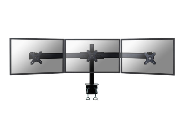 The Neomounts by Newstar desk mount, model FPMA-D700D3 is a tilt- and rotatable desk mount for 3 flat screens up to 27”. This mount is a great choice for space saving placement on desks using a desk clamp. Neomounts by Newstar's versatile rotate (360°) and swivel (45°) technology allows the mount to change to any viewing angle to fully benefit from the capabilities of the flat screen. The mount is manually height adjustable from 32 to 42 centimetres. Depth 7 centimetres. An innovative cable management conceals and routes cables from mount to flat screen. Hide your cables to keep the workplace nice and tidy. Neomounts by Newstar FPMA-D700D3 has one pivot point and is suitable for screens up to 27" (69 cm). The weight capacity of this product is 8 kg each screen. The desk mount is suitable for screens that meet VESA hole pattern 75x75 or 100x100mm. Different hole patterns can be covered using Neomounts by Newstar VESA adapter plates. By using an ergonomic mount neck- and back complaints can be avoided. Ideal for use in offices and on counters or in a reception area. All installation material is included with the product.