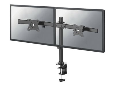 The Neomounts by Newstar desk mount, model FPMA-DCB100DBLACK is a tilt-, swivel and rotatable desk mount for 2 flat screens up to 27”. This dual crossbar mount is a great choice for space saving placement on desks using a desk clamp or desk grommet. Neomounts by Newstar's versatile tilt (+45°/-45°), rotate (360°) and swivel (30°) technology allows the mount to change to any viewing angle to fully benefit from the capabilities of the flat screen. The mount is manually height adjustable from 0 to 45 centimetres. The cable management conceals and routes cables from mount to flat screen. Hide your cables to keep the workplace nice and tidy. Neomounts by Newstar FPMA-DCB100DBLACK has a crossbar with two monitor holders with one pivot point and is suitable for screens up to 27" (69 cm). The weight capacity of this product is 10 kg each screen. The desk mount is suitable for screens that meet VESA hole pattern 75x75 or 100x100mm. Different hole patterns can be covered using Neomounts by Newstar VESA adapter plates. By using an ergonomic mount neck- and back complaints can be avoided. Ideal for use in offices and on counters or in a reception area. This mount is the ultimate save spacer on your desk. All installation material is included with the product.