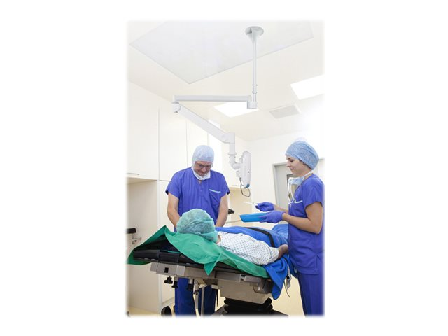 The Neomounts by Newstar ceiling mount, model FPMA-HAC100HC is a tilt- and swivel ceiling mount for medical flat screens up to 32”. This mount is a great choice for space saving placement or when wall mounting and floor placement is not an option. Neomounts by Newstar's versatile tilt (55°) and swivel (370°) technology allows the mount to change to any viewing angle to fully benefit from the capabilities of the flat screen. The support is easily height adjustable from 0 to 170 centimetres using a gas spring. Depth adjustable from 0 to 170 centimetres. An innovative cable management conceals and routes cables from mount to flat screen. Hide your cables to keep the workplace nice and tidy. Neomounts by Newstar FPMA-HAC100HC has two pivot points and is suitable for screens up to 32" (81 cm). The weight capacity of this product is 12 kg each screen. The ceiling mount is suitable for screens that meet VESA hole pattern 75x75 or 100x100mm. Different hole patterns can be covered using Neomounts by Newstar VESA adapter plates. There are two cables pre-wired in the mount: 1 x UTP and 1 x 12V DC. All installation material is included with the product.