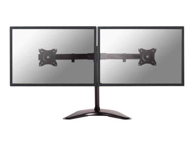 The Neomounts Select desk mount, model NM-D335DBLACK is a tilt-, swivel and rotatable desk mount for 2 flat screens up to 27”. This mount is a great choice for space saving placement on desks using a desk clamp, desk stand or desk grommet. Neomounts Select's versatile tilt (90°), rotate (360°) and swivel (30°) technology allows the mount to change to any viewing angle to fully benefit from the capabilities of the flat screen. The mount is manually height adjustable from 0 to 45 centimetres. An innovative cable management conceals and routes cables from mount to flat screen. Hide your cables to keep the workplace nice and tidy. Neomounts Select NM-D335DBLACK has one pivot point and is suitable for screens up to 27" (69 cm). The weight capacity of this product is 8 kg each screen. The desk mount is suitable for screens that meet VESA hole pattern 75x75 or 100x100mm. Different hole patterns can be covered using Neomounts Select VESA adapter plates. By using an ergonomic mount neck- and back complaints can be avoided. Ideal for use in offices and on counters or in a reception area. All installation material is included with the product.
