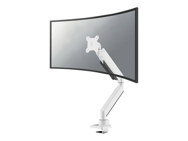 The Neomounts Select NM-D775WHITEPLUS is a tilt-, swivel and rotatable desk mount for curved screens up to 49". This mount is a great choice for space saving placement on desks using a top-fix desk clamp or grommet mount. The NM-D775WHITEPLUS mounts are specifically designed to support curved screens. They feature a strengthen head for curved screens and are designed to support a higher total capacity up to 49? and a maximum weight of 18 kg. Neomounts Select?s unique tilt (90°), rotate (180°) and swivel (180°/ 360°) technology allows the NM-PLUS mounts to change to any viewing angle for optimal use of the capabilities of the ultra-wide screen. The mount is equipped with a 180° stop mechanism. The mounts are easily adjustable in height to 59 centimetres, using a gas spring. Additionally, the mounts are also adjustable in depth, from 0 to 63 centimetres. A unique cable management conceals and routes cables from mount to the ultra-wide screen. The NM-D775WHITEPLUS desk mounts are ideal for use in offices, on counters and in reception areas. All installation material is included with the product.