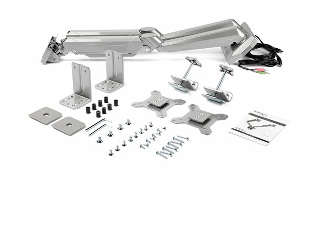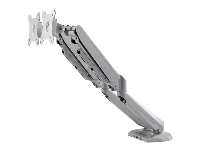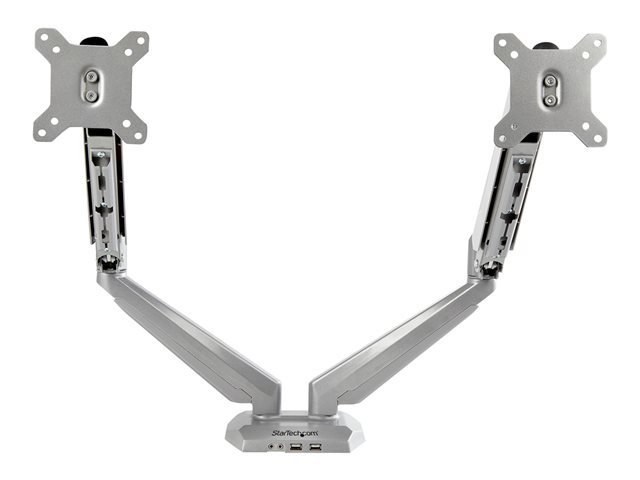 StarTech.com Dubbel skrivbordsmonterad monitorarm med inbyggd 2-ports USB-genomströmning, Klämma, 16 kg, 38,1 cm (15"), 81,3 cm (32"), 100 x 100 mm, Silver