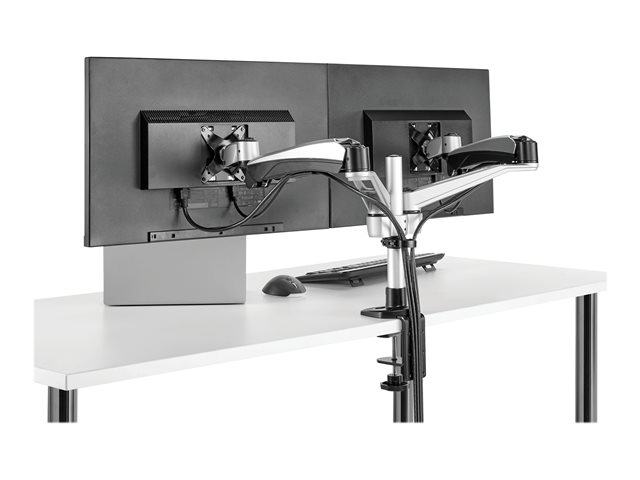 Den dubbla skärmmonteringen stöder två skärmar från 12" till 30" om de är uppställda sida vid sida. Det är idealiskt för flera användningsområden för företaget eller hemmakontoret, inklusive grafisk design, spelande, fotoredigering och många andra.