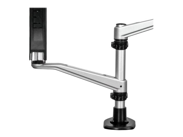 De skrivbordsmonterade monitorarmarna klarar av all rörelser på flera axlar så att du kan luta, panorera och rotera för att när som helst justera vinkeln för att passa dina behov. Armarna stöder även landskap-till-porträtt-skärmrotation för varje skärm för att visa långa sidor eller avsnitt av kod utan att bläddra.