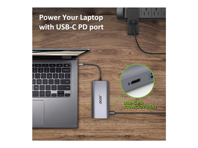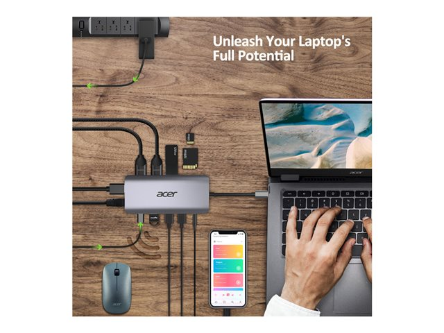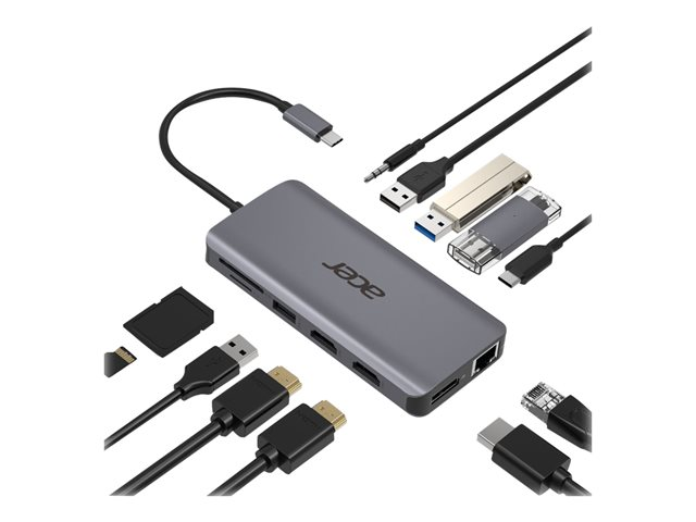 ACER 12-IN-1 TYPE-C DONGLE 2xUSB3.2 2xUSB2.0 2xHDMI 1xDisplayPort Type C PowerDelivery SD Card reader TF Card reader 1000M Ethernet