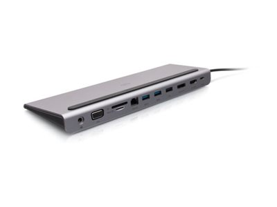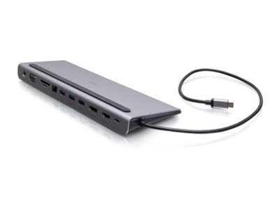 C2G USB-C 10-in-1 Triple Display Docking Station with HDMI, DisplayPort, VGA, Ethernet, USB, SD Card Reader, 3.5mm Audio and Power Delivery up to 100W