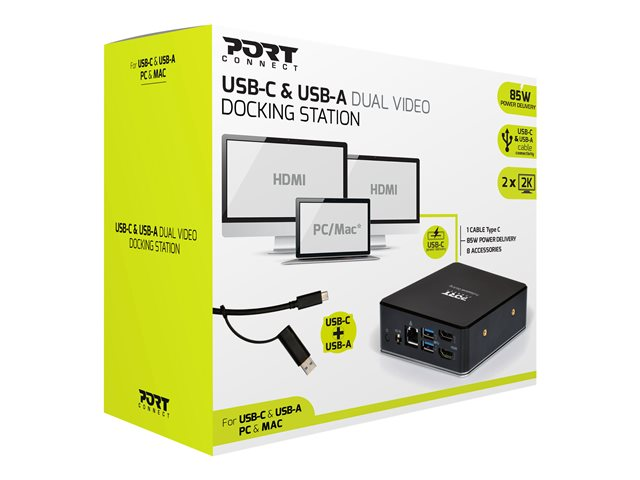 PORT connect USB-C o USB-A Dual Video Docking Station 2 X 2K