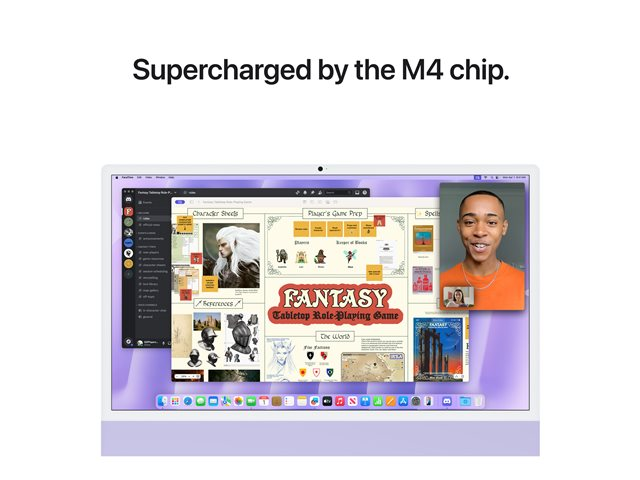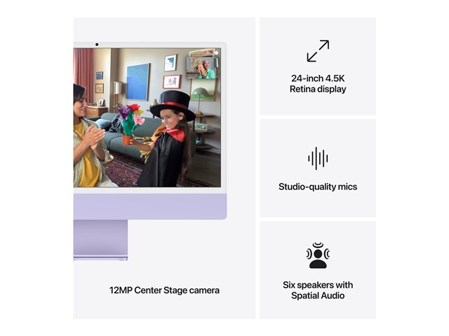 Allt-i-ett M4 - RAM 16 GB - SSD 512 GB - Apple M4 10-core - Gigabit Ethernet, IEEE 802.11ax (Wi-Fi 6E), Bluetooth 5.3 - macOS Sequoia 15.0 - skärm: LED 24" 4480 x 2520 (4.5K) - lila