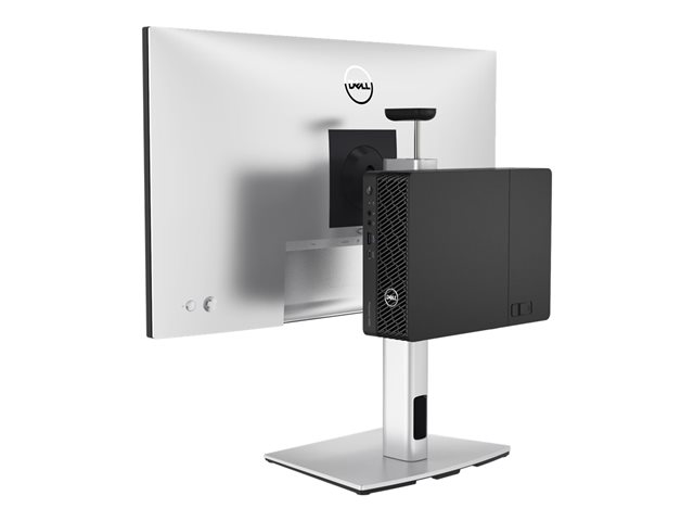 - Skydda din stationära Precision Compact-dator och Dell-skärm med hjälp av ett smidigt allt-i-ett-stativ. Stativet är enkelt att ställa in och har ett kabelhanteringssystem som ger en prydlig arbetsplats.