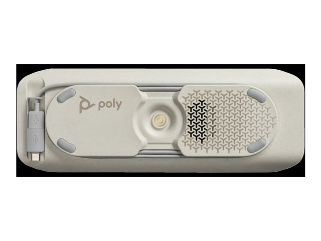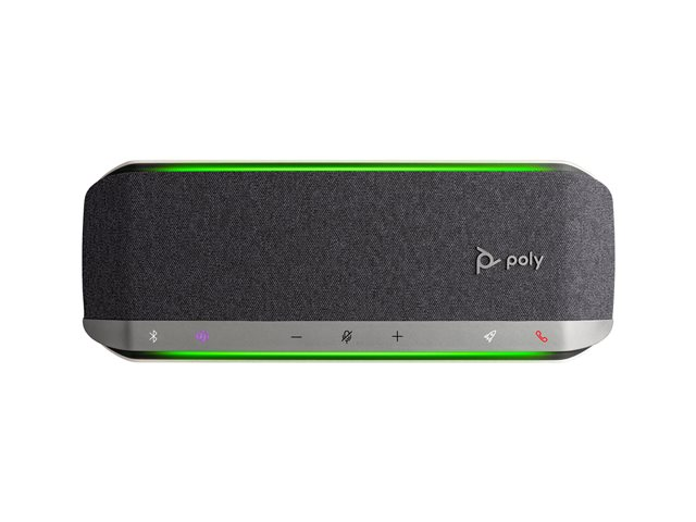 - Poly Sync 40 erbjuder professionellt ljud till alla olika mötesutrymmen. Parkoppla två enheter trådlöst för större mötesrum. Enheten är redo att användas med upp till 30 timmars samtalstid.