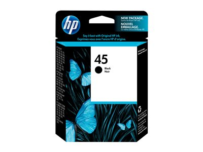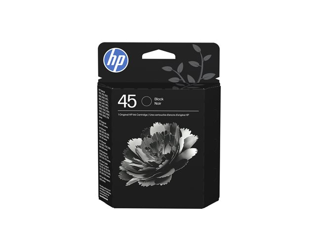 HP nr. 45 svart bläckpatron är idealisk för företags- eller hemanvändare som vill ha högkvalitativa, långvariga utskrifter. Den ger hög utskriftskvalitet med pigmenterat bläck med hög densitet som ger skarpa och tydliga tecken på de flesta bondpapper/kopieringspapper och är gjord för att fungera med HP:s färgbläck. Bläckpatronen innehåller äkta HP-bläck som ger kvalitet och tillförlitlighet varje gång du skriver ut.