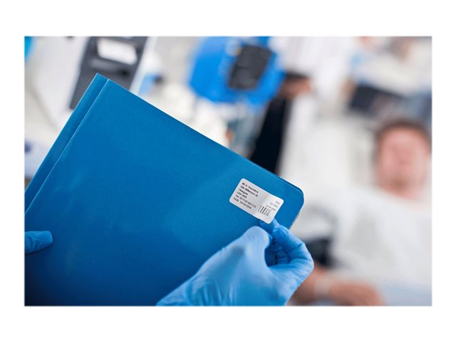 Med 1 900 etiketter per rulle kan du enkelt skriva ut streckkodsetiketter med text och logotyper från din kompatibla Brother-etikettskrivare.