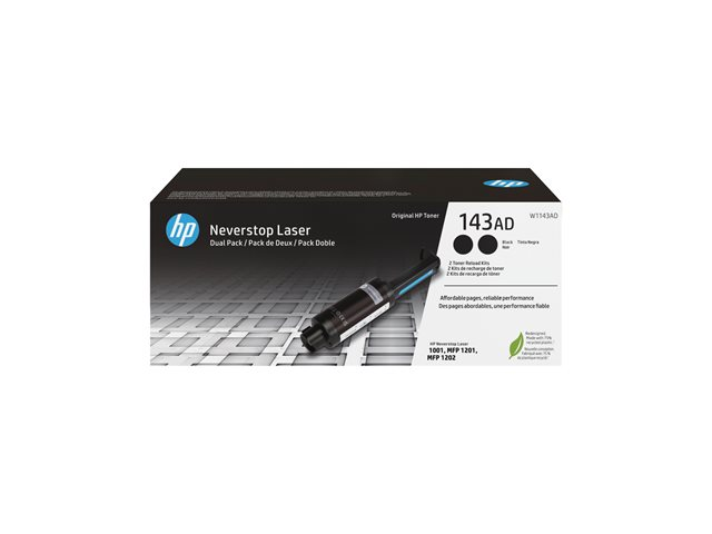 HP 143AD Dubbelpack svart original Neverstop Toner Reload Kit, 2500 sidor, Svart, 2 styck