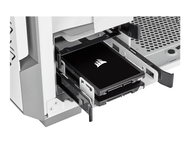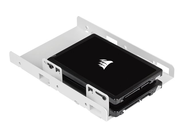 The CORSAIR dual-SSD mounting bracket solves the problem of upgrading desktop PCs which only have 3.5" hard drive bays. Installation is straightforward: place one or two SSDs into the bracket with the screws provided, and then attach the bracket to any standard 3.5" drive bay. The bracket looks great in any case, and it's designed to allow extra clearance for connecting SATA data cables without straining the connectors.