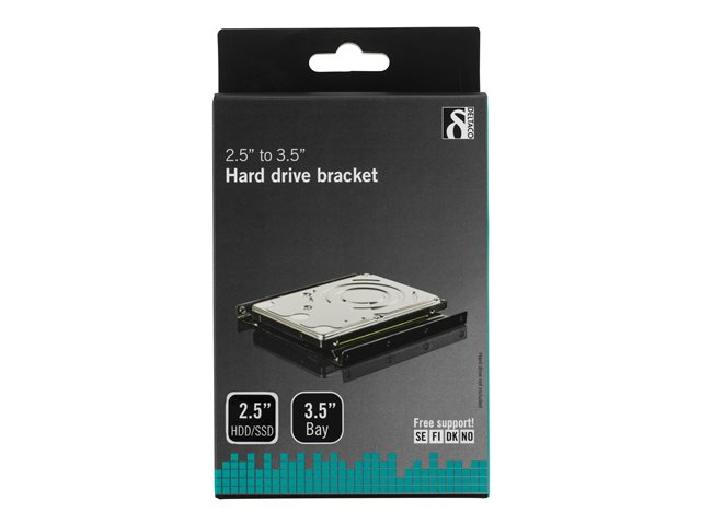 DELTACO monteringsram för att kunna montera en 2,5" hårddisk i en 3,5"-plats, skruvar ingår, svart.