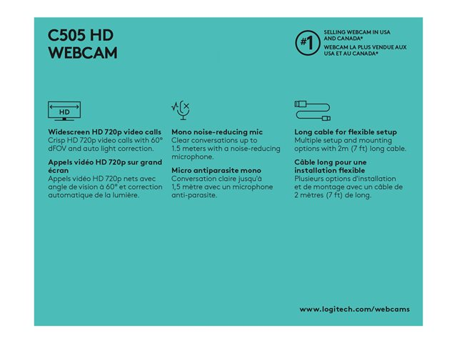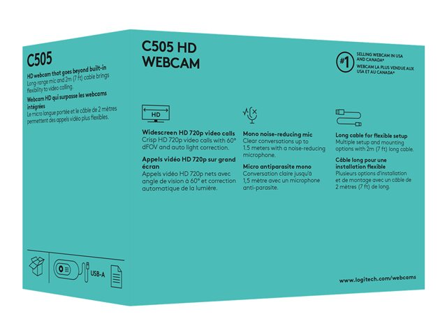 C505 är en webbkamera med HD 720p-video och mikrofon med lång räckvidd som stöder tydliga, naturliga samtal på upp till 3 meters avstånd. Plus en extra lång USB-A-sladd på 2 meter som ger unika, mångsidiga monteringsalternativ.