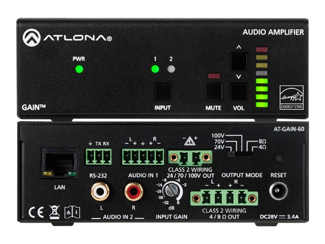 Atlona AT-GAIN-60, 2.0 kanaler, D, 0,1%, 95 dB, 20000 O, 4/8 O
