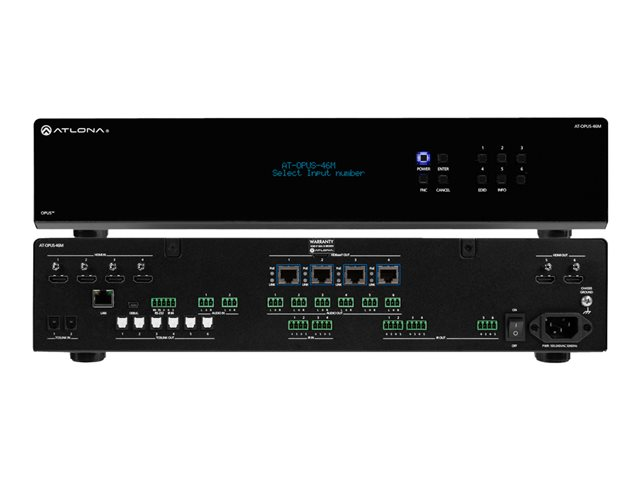 - HDBaseT outputs for transmission of HDMI, Ethernet, power, and control up to 330 feet (100 meters)
