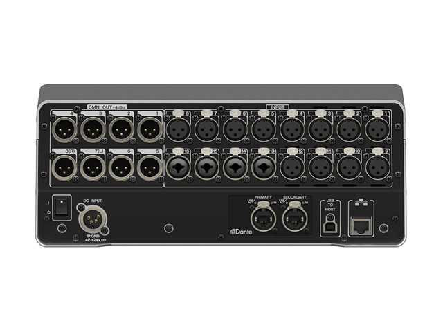 - 16 mic/line (12 XLR + 4 XLR/TRS phones combo) inputs, and 8 (XLR) outputs