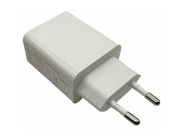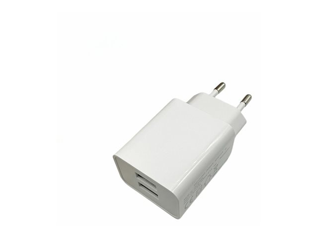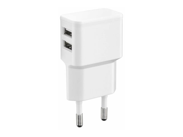 2 USB-portar, Slank design för smartphones eller surfplattor. Ingång: 230V. Utgång: 5V/2,4A/12Watt.