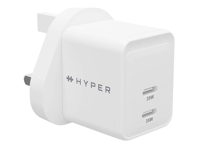 GaN - 35 Watt - QC 3.0, Power Delivery 3.0 + PPS - 2 utdatakontakter (USB-C) - vit - Storbritannien