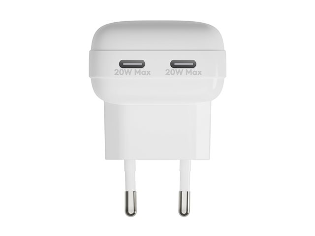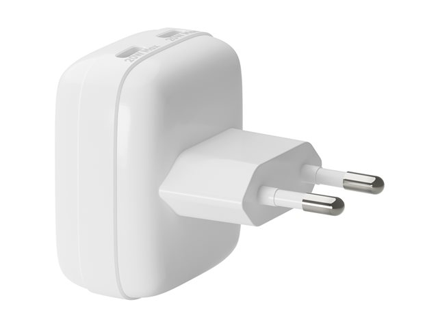 Strömadapter - platt - 20 Watt - 3 A - 2 utdatakontakter (USB-C) - vit - Europa
