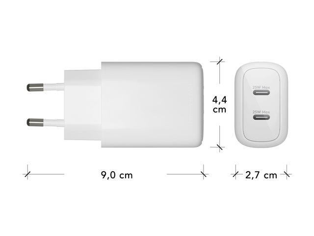 Strömadapter - 25 Watt - 2 utdatakontakter (24 pin USB-C) - vit - Europa