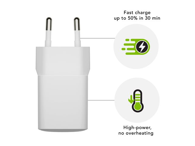 Strömadapter - 30 Watt - PD, QC (24 pin USB-C) - vit - Europa