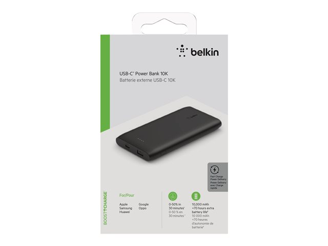 The Belkin BoostCharge power bank is a high-capacity, versatile charging solution designed to keep your cellular phones and tablets powered throughout the day. With a 10000 mAh battery, it offers extended usage and the convenience of charging multiple devices thanks to its dual output connectors, including a 24 pin USB-C and a 4-pin USB Type-A. This power bank is equipped with Fast Charge and Power Delivery technologies, ensuring your devices charge quickly and efficiently. It comes with a 15 cm USB-C to USB-C cable, making it ready to use right out of the box. Safety is a priority, as it complies with MFi and USB-IF standards and offers an equipment protection value of 2500 US Dollars, ensuring your devices are charged safely and reliably.