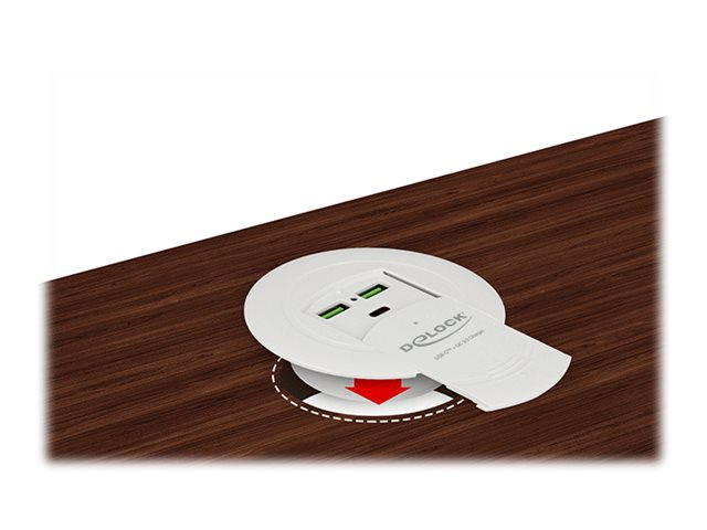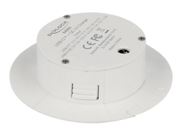 This USB Power Delivery (PD) charger by Delock can be used to charge laptops with USB Type-C connector. It provides various voltages from 5 V to 20 V and power up to 85 Watt. In addition, 2 USB Type-A connectors with Qualcomm Quick Charge 3.0 charging technology are available for smartphones.